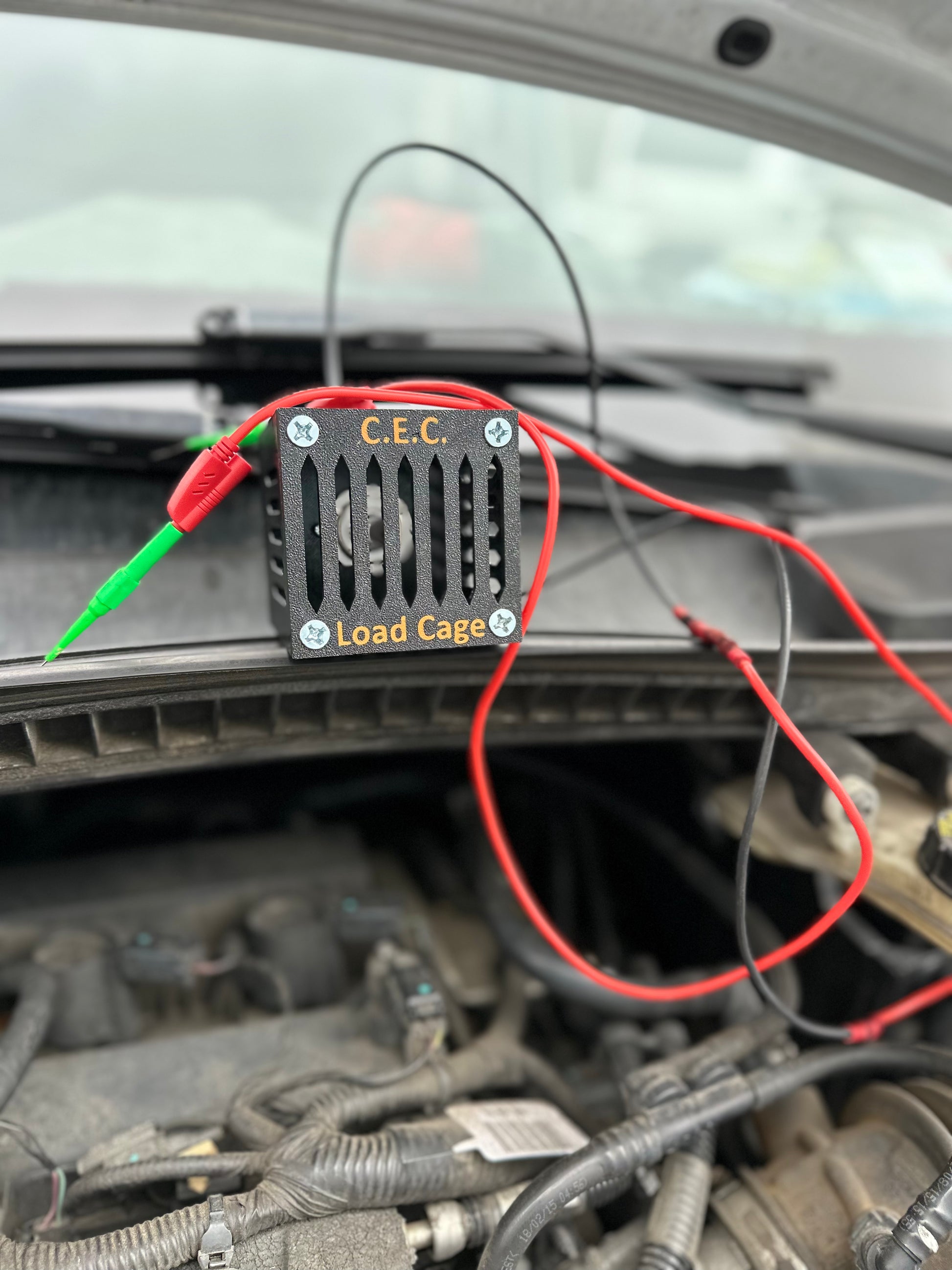 That's a Diag!™ Use this cage, with its 3 ft leads to properly load test 12v circuits!